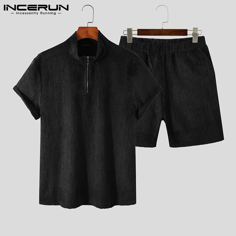 RisingHope Korea INCERUN 2PCS Mens Short Sleeve T Shirts Short Sleerwear Sets Sports Tracksuit Lounge Suit